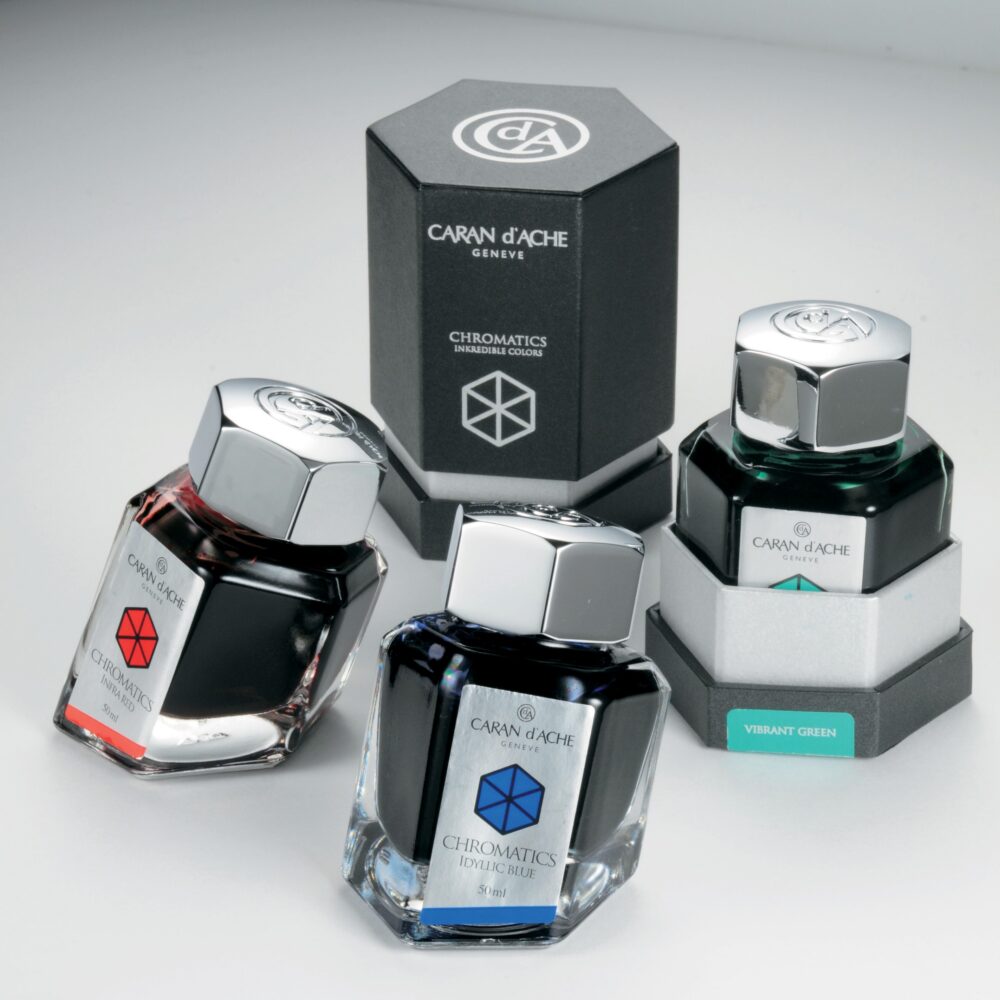 万年筆インクには、ボトルデザインの美しさという魅力もある。特にガラス製ボトルを採用しているブランドのインクは気品と風格をまとっている。また各インクには、ブランドのコンセプトや歴史が反映されていたり、インク吸入を快適にさせるための工夫や機能があったりと、よく眺めてみると、その奥深い魅力を感じられる。