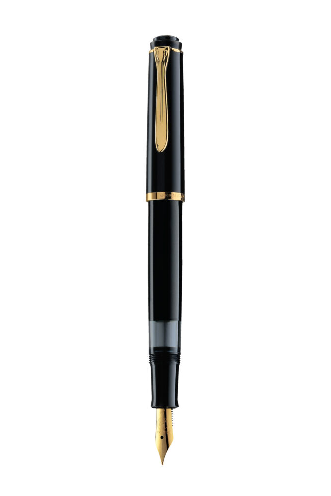 ブランドを代表する「スーベレーン」は1950年代の400~700シリーズの発展形で、1982年のM400から始まった中核シリーズだ。「スーベレーン」とは英語の「sovereign(ソヴリン)」と同意のドイツ語。「君主」「卓越した」「優れもの」などの意味を持つ。共通の特徴は18金/14金製プラチナ装飾のペン先とピストン式の吸入方式だ。