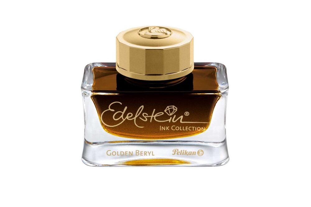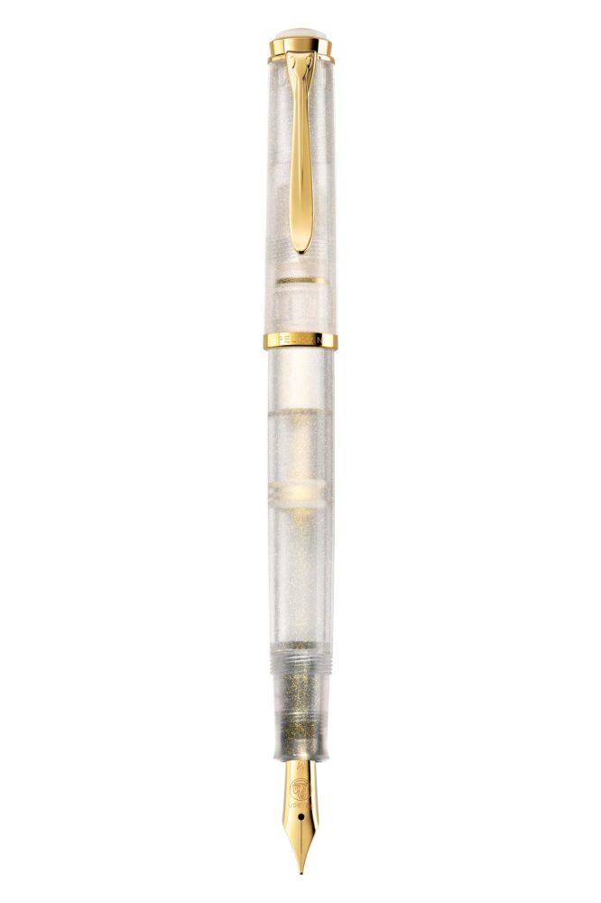 ペリカンの2021エーデルシュタイン・インクオブイヤーである「ゴールデンベリル」との相性を考えて作られた、特別生産モデル。半透明のボディに、金色に輝くラメが散りばめられ、インクとの一体感を演出している。