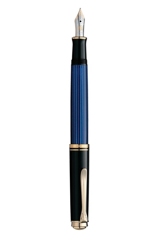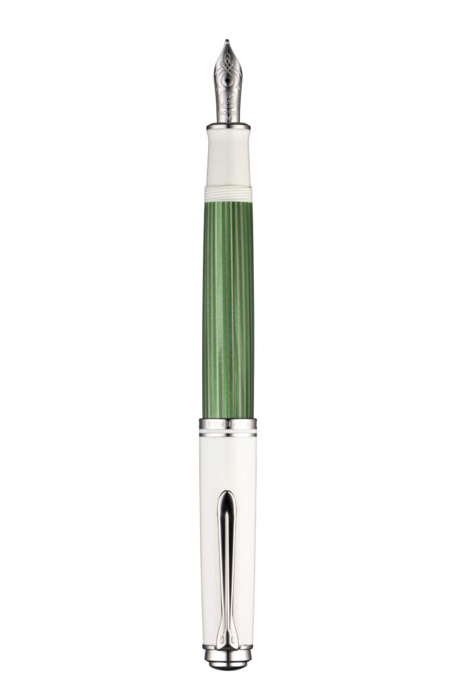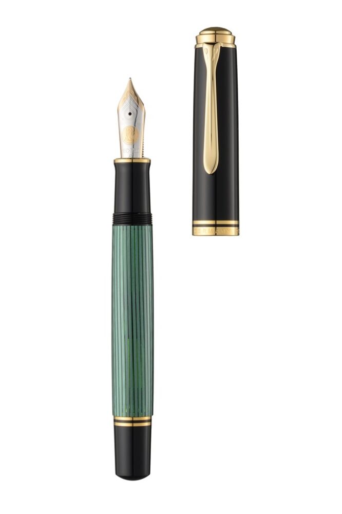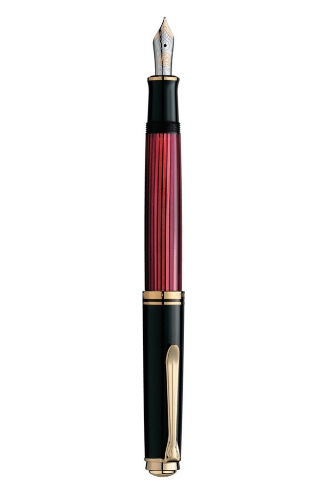スーベレーン、そしてペリカンを代表するフラッグシップモデル。1987年に登場し、翌1988年から発売開始。M400と並ぶスーベレーンのベースモデルとなり、カラーバリエーションを増やしてきた。緑縞、ブルー縞、黒の3色に加え、2022年3月下旬より10年ぶりにボルドー縞(レッドストライプ)が再登場。全4色がある。雑誌「趣味の文具箱」誌上で開催されている読者投票をもとに選ばれる「PEN OF THE YEAR 2021」にて9連覇を達成した、老若男女問わず愛される名品である。