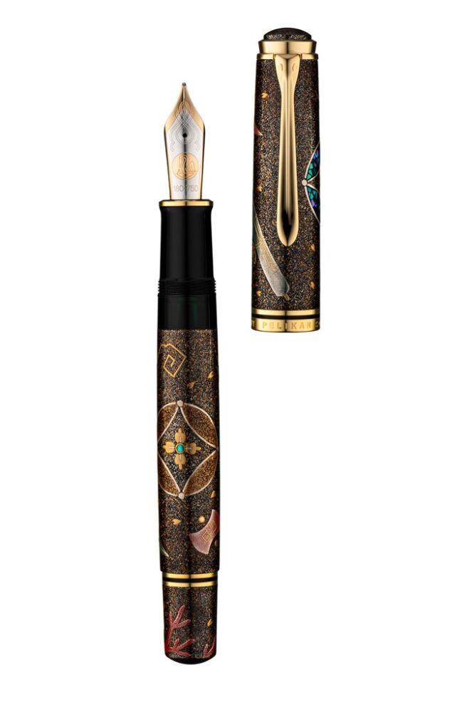 彫金で繁栄したスペイン中部の古都「トレド」の名を冠したこの万年筆は、スターリングシルバー製の胴軸にペリカン柄を彫り込み、24金ゴールド塗装で仕上げた高級モデルだ。スペインの古都トレドで培われた技法をアレンジし、現在は純銀製の筒に100を超える工程で彫金を施している。デザイン画をベースにマイスターが手彫りもしているため、1本ごとに微妙に表情が異なるのが楽しい。過去にはシルバートリムやブラックなど存在したが、今はこちらのM700とM900が展開されている。
