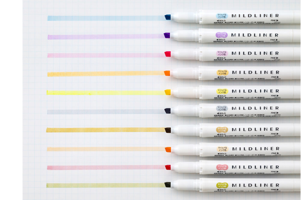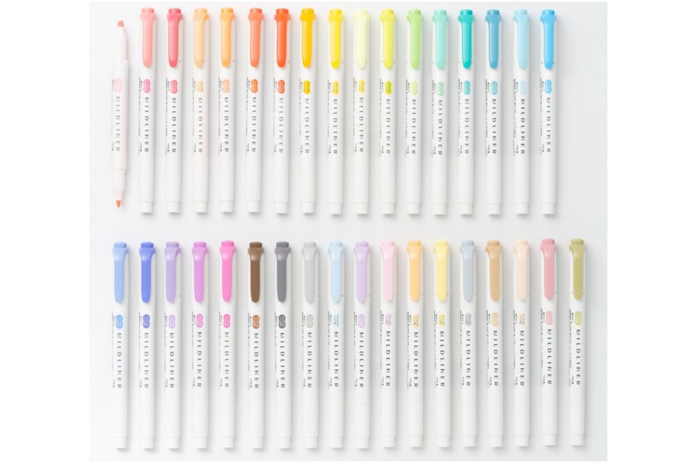 ゼブラの『マイルドライナー』は、おだやかな色合いのラインマーカー。2009年の発売当初、仕事の書類にマーキングをする時に目に優しい事務用途のペンとして売り出したが、近年可愛く彩るためのペンとして使い方が広がり、インスタグラムでは34万件以上の投稿がされるなど世界中で広く愛用されている。