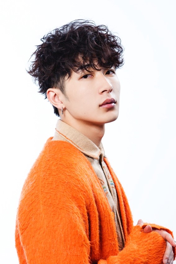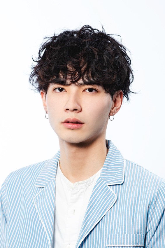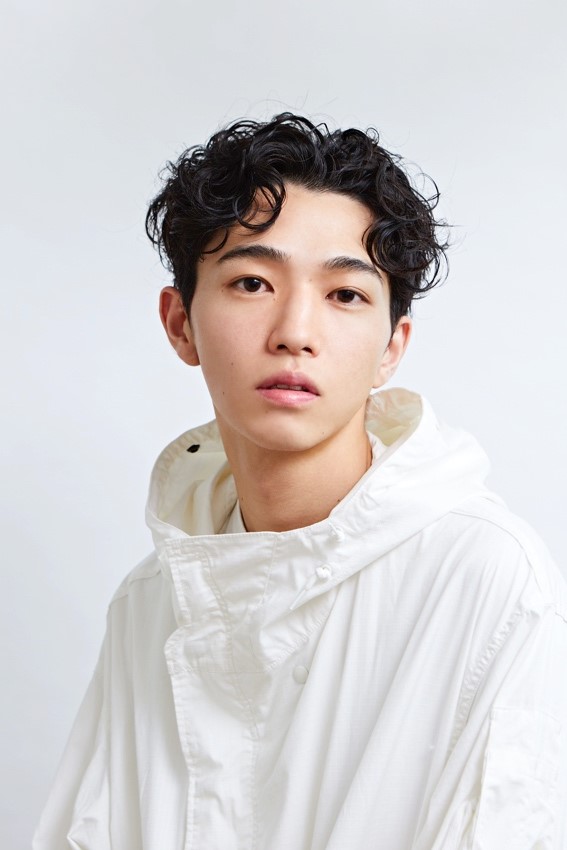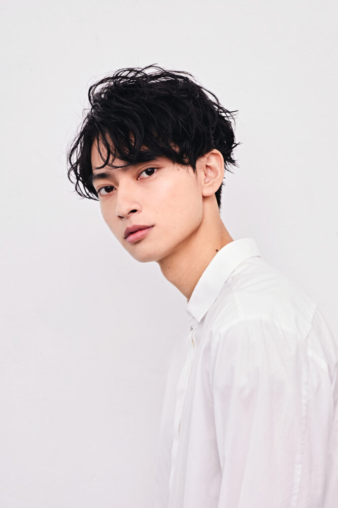 ゆるく巻いたパーマで作る爽やか&セクシーなスタイル。マスクで顔が隠れがちな今、アップバングで表情をよく見せることで、クリーンな安心感を狙う。フロントのみ起こしながらドライ、ワックスをなじませて仕上げれば完成だ。