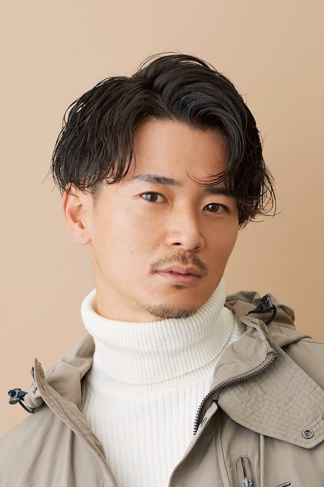 欲しいところに立体的なリッジが形成できて、フォルムコントロールしやすいのがスパイラルパーマ。抜け感のある動きを出すようツヤ系ワックスをしっかりもみ込み、センターパートで大人カッコよく仕上げた。