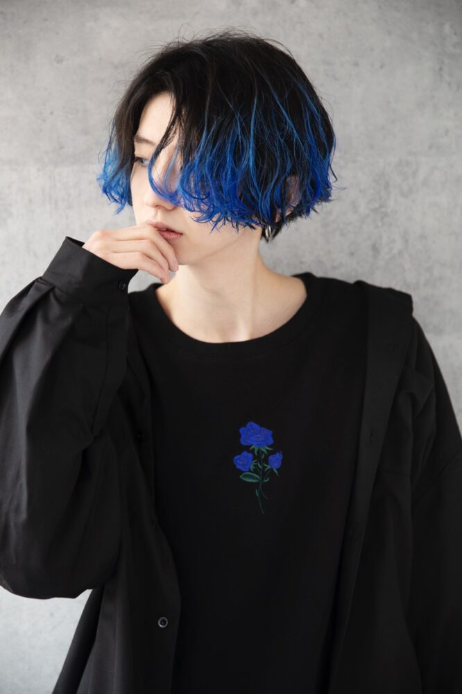 12.ブラック×ブルーのバイカラーでかっこいいミディヘア