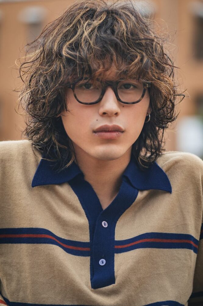 レングス長めのパーマは、きれいな清潔感が不可欠。そうすればスタイリング次第でグランジな仕上がりにもアレンジ可能。毛先の動きをくずしすぎないように乾かしたあと、クリームワックスを付けてフォルムを整える。
