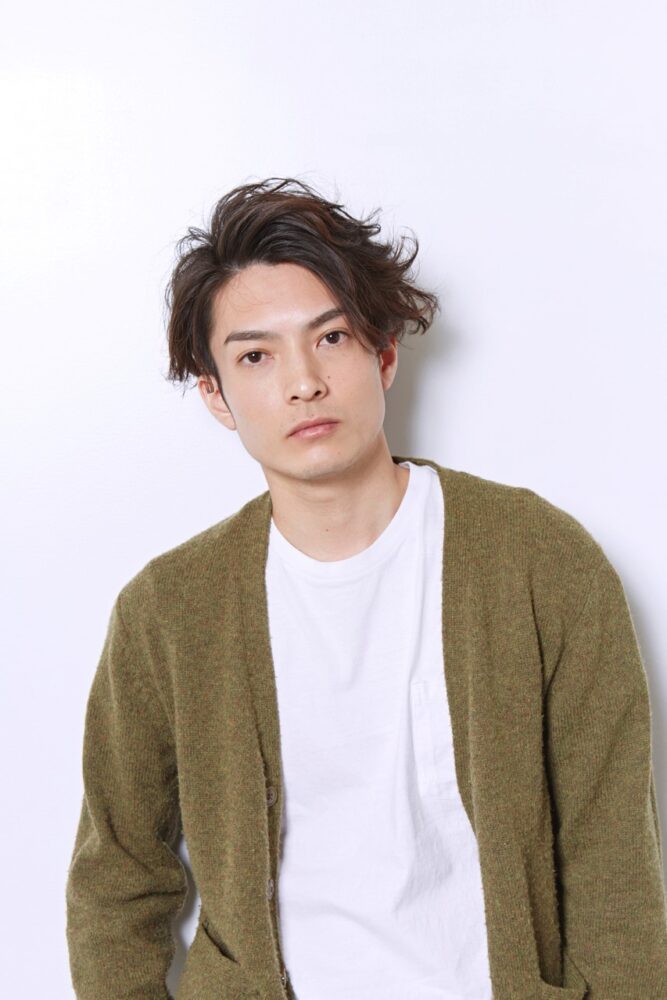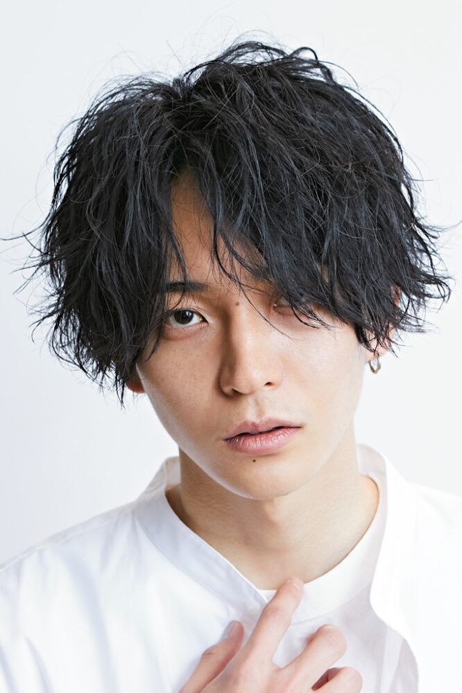 ゆるいクセ毛のようなパーマをかけた無造作スタイル。フロントの上げ下ろしやパートのバランスなどスタイリングで遊べる幅がたっぷり。少しパートをつけてジェルでキープしつつラフな毛流れを作るとカッコよく決まる。