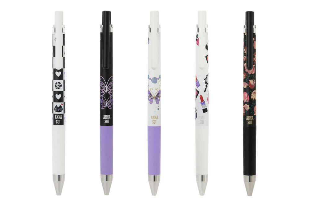 「ANNA SUI×ジュースアップ」は、細書きに適した独自開発のペン先“シナジーチップ”を採用し、鮮やかな発色と、にじまずくっきりとした筆跡が特長のゲルインキボールペン「ジュースアップ」をベースとしている。