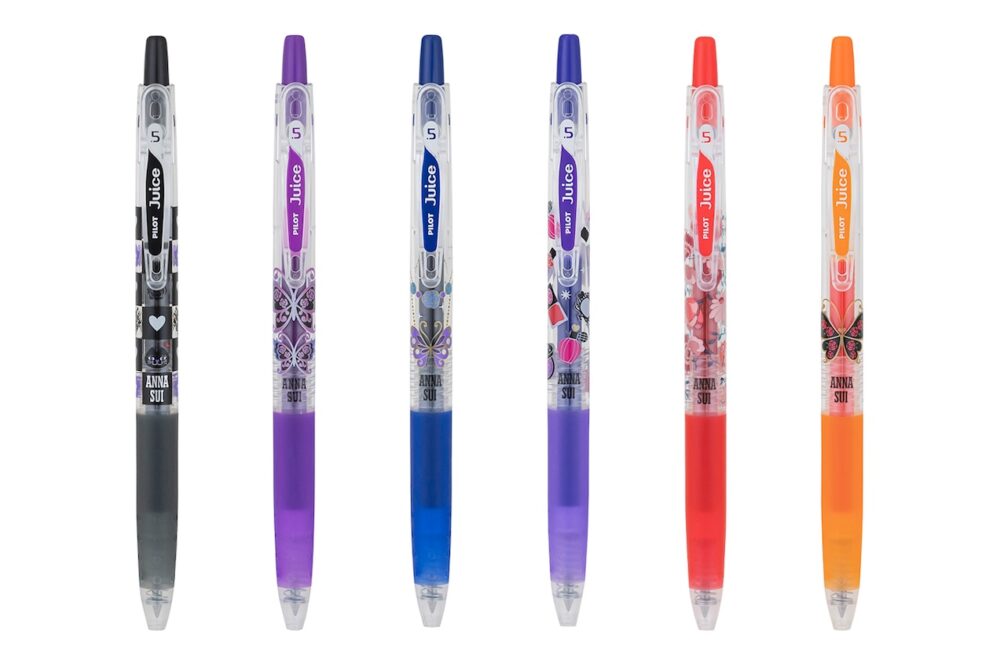 第2弾は、ゲルインキボールペン「ANNA SUI×ジュースアップ」「ANNA SUI×ジュースアップ3色セット」「ANNA SUI×ジュース」を数量限定にて発売する。