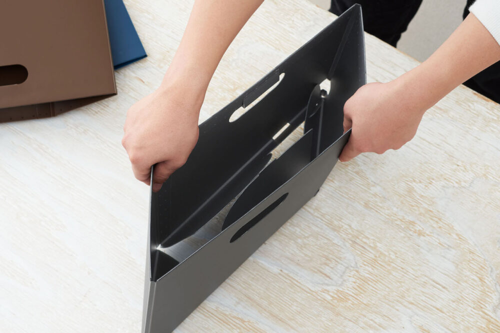 今回は「SPOT」シリーズ第2弾として、手軽に畳めるシンプルデザインの収納ボックス「インボックス A4」を発表。同商品は、家庭内の様々な荷物をすっきり整理できる、折り畳み式の収納ボックス。使わないときには薄く折り畳んで保管することができる。