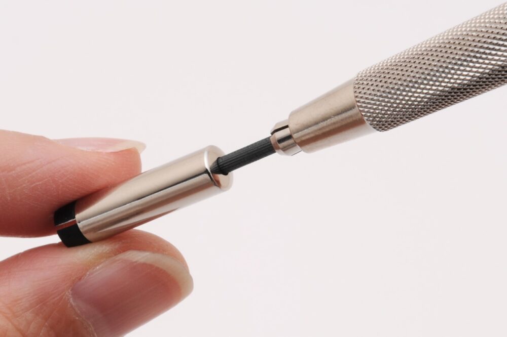 芯や木軸を削るのが面倒な理由で、鉛筆は敬遠されることが多い。また削っていくと短くなって長さが可変することも鉛筆の弱みだ。この鉛筆の弱点を解消する道具がある。それが「芯ホルダー」だ。