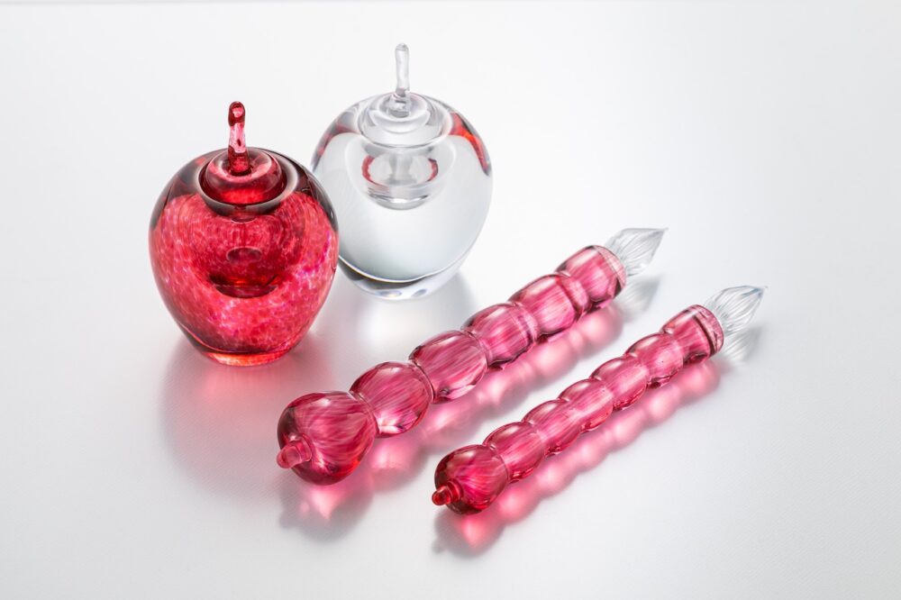 ガラス食器の製造販売を行う石塚硝子 連結グループ子会社の北洋硝子が作り上げる青森県伝統工芸品『津軽びいどろ』から、本日より販売店舗を限定し、平山萬年堂、及びWORK&STUDY KISUKE、北洋硝子ショールームにて青森らしい“りんご”をモチーフにしたガラスペンシリーズ「ちいさな林檎」を発売。