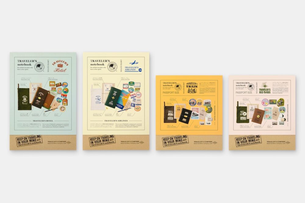 新登場の限定セットは、「トラベラーズカンパニー」が夢見る架空のホテル、エアライン、鉄道、レコードレーベル それぞれのロゴを箔押しした「トラベラーズノート」や「トラベラーズノート パスポートサイズ」に、オリジナルデザインのリフィル、さらに、チャームやステッカーなどのカスタマイズアイテムをボックスにセットしたもの。安心して自由に世界中を旅ができない今、想像力を掻き立てる「トラベラーズノート」とともに心の旅を楽しむことができる。