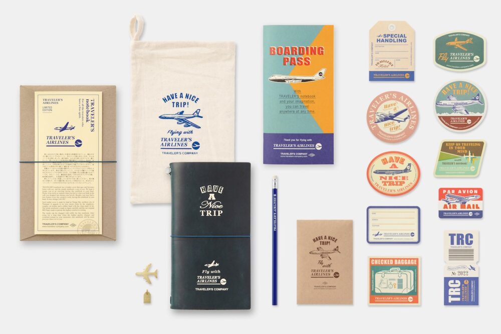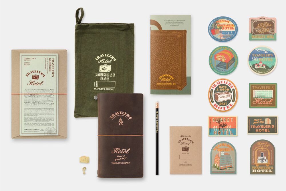 この度「トラベラーズカンパニー」から、「トラベラーズカンパニー」が夢見る架空のホテル、エアライン、鉄道、レコードレーベルをイメージした「トラベラーズノート」および「トラベラーズノート パスポートサイズ」とステッカーやチャームなどのカスタマイズアイテムの限定セットが登場。