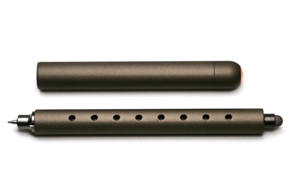 台湾ブランド「アントウ」のボールペンS/Cには、純正のリフィルがない。なぜなら、他社製のほとんどのボールペンのリフィルを使える万能の作りをしているから。万力のような緻密な固定装置が先端にあり、ここで一般的なボールペン替え芯を確実に固定できる。マグネットで簡単に着脱できるキャップもあるので、水性ボールペン(ローラーボール)の替え芯も使える。唯一無二の機能を持つ独創的な筆記具なのだ。