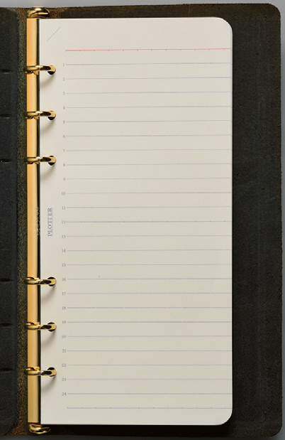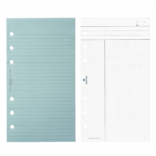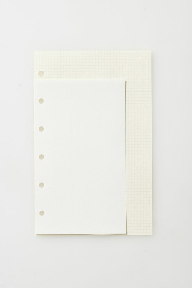 自由に書き込めるノートリフィルは種類が多く、組み合わせは無限。ノートリフィルだけを1 冊に綴じてシンプルなノートとしても楽しめる。不要になったページを抜くことで大切な情報だけが自動的に残り、明快かつ機能的な手帳になる。ノートリフィルは、システム手帳の基本リフィルであり続ける。