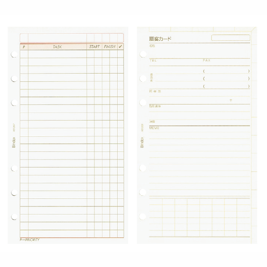 ある特定の機能を持たせるためにデザインされたリフィルもたくさん揃っている。やるべき仕事の締め切りを守り、確実にこなすための「ToDo」は、近年のバレットジャーナルブームもあっていっそう人気。会議の記録を効率良く残す「ミーティング」や、「ID &パスワード」を管理するリフィルなどもある。
