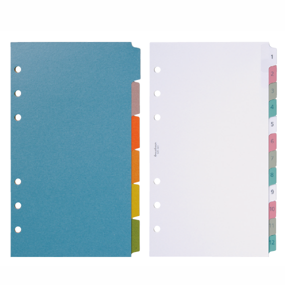 システム手帳はバインダー式でページの差し替えが自由だ。情報が蓄積されてきたら、内容を分類することで機能が格段に上がる。特に分類しやすいのが「インデックス」。タブは横と縦があり、さらに段数や色の違いで多彩なバリエーションがある。100枚以上を綴じるリング径15mm以上ではぜひ活用したい。