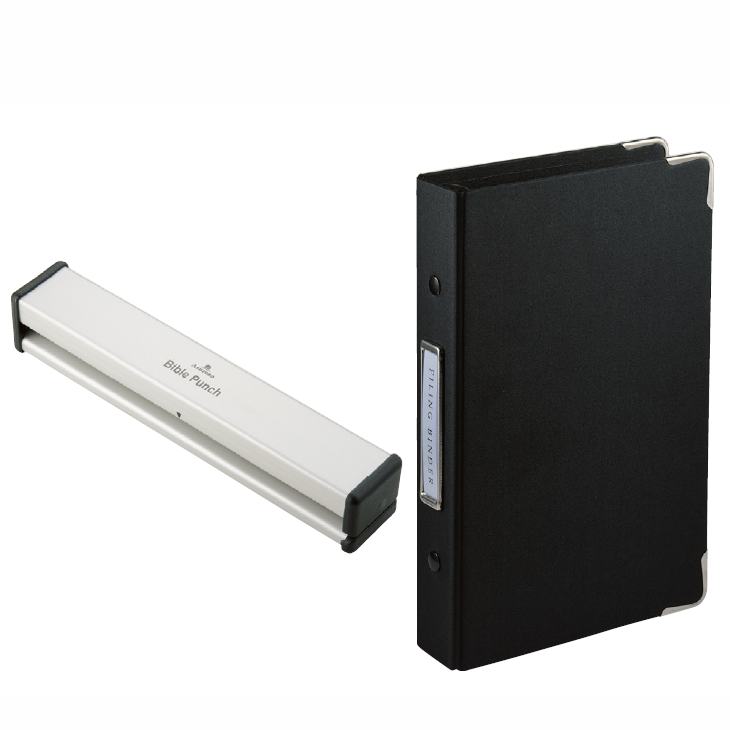 アクセサリーはシステム手帳の可能性を広げて、リフィルをより使いやすくしてくれるアイテム。資料のファイリングをしたり、自作のリフィルを作る時には、穴開けパンチは必須。また、リフィルや記入済みのメモ、ダイアリーを保管する保存バインダーなども有効的に使うと便利だ。