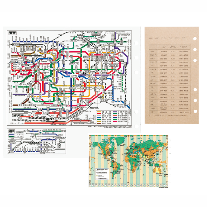 「見る・読む」は地図や路線図などのデータが印刷してあるリフィル。折りたたんである場合が多く、デジタル時代においても、紙を開いたら一瞬で全体を俯瞰できる魅力は不変。システム手帳ならではのアドバンテージと哀愁が詰まっている。スマホの電波が届かない場所や、電池が切れた緊急時にも役立つ。