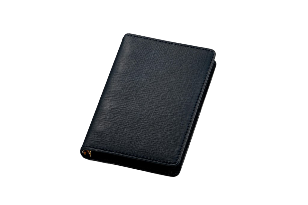 横幅はほぼ名刺サイズで、名刺ホルダーのリフィルも多い。土屋鞄製造所の「トーンオイルヌメ マルチポケット バイブル手帳」のように、内側にカード収納用ポケットを設けてあるモデルも。手帳に名刺を保管しておけば、万が一の時のストックとなり安心だ。
