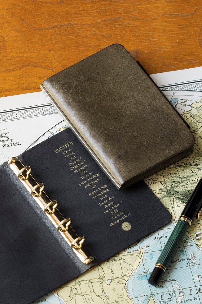 2017 年に始動し、クリエイティブワークを愉しむ人向けのツールを展開するプロダクトブランド。「プロッター」は、「計画する人、構想する人」などを表す言葉。そんな人々をサポートするツールをコンセプトに、機能的な製品を多く生み出している。革一枚をオリジナル金具で綴じた、180度開く軽量バインダーが代表的。