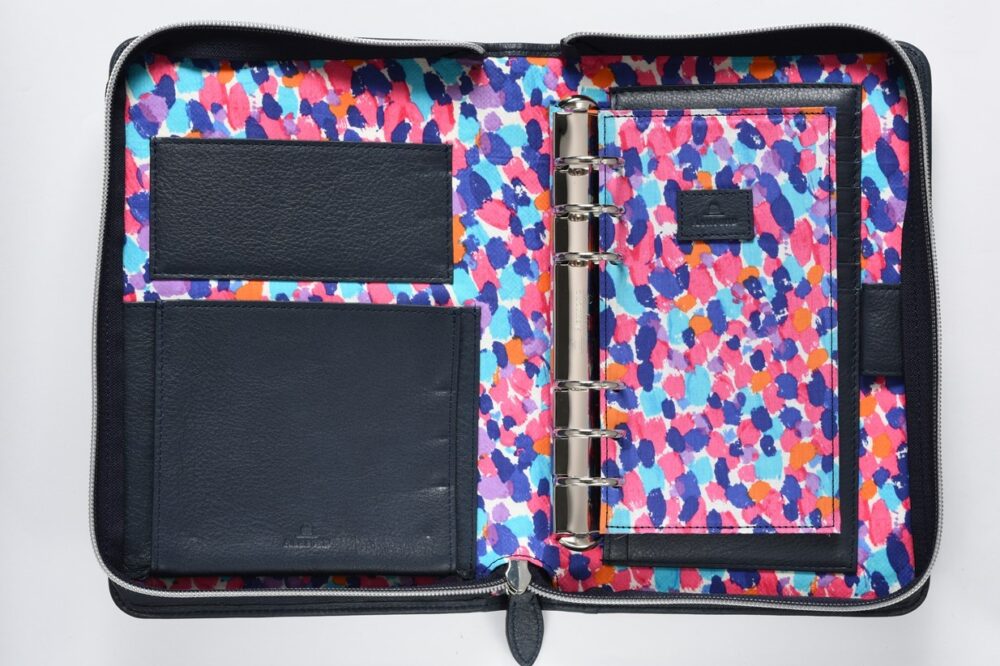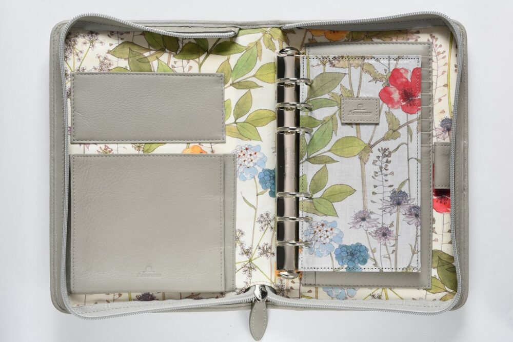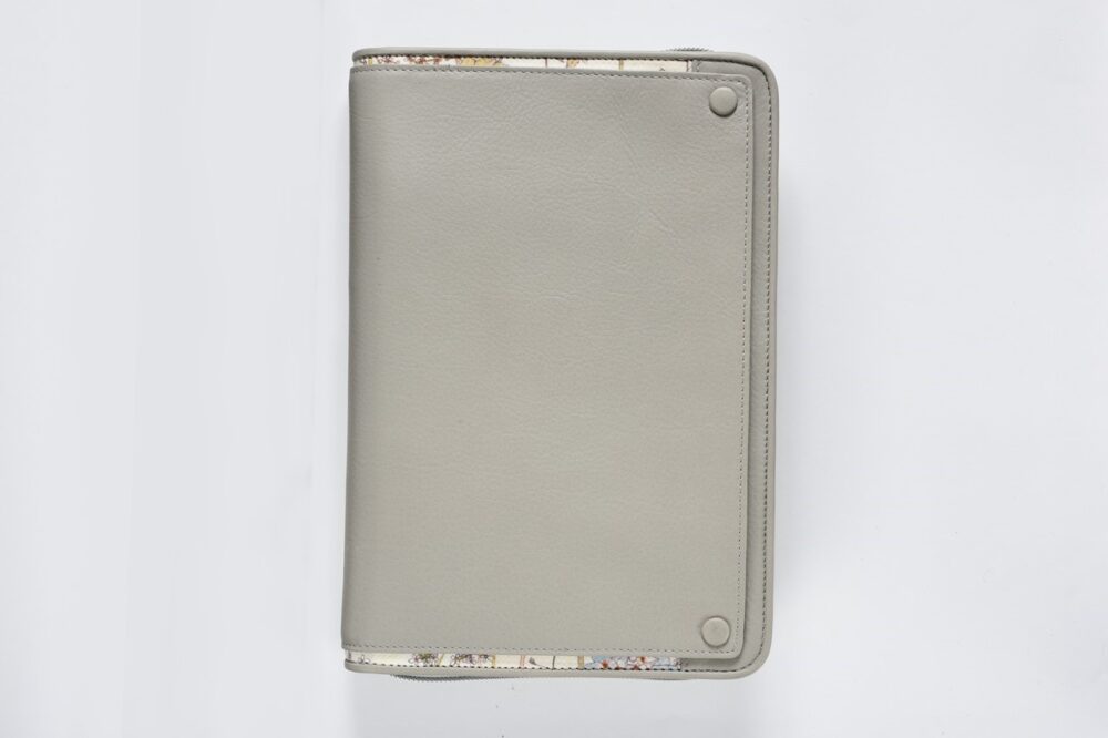 A5のシステム手帳にジップが付いたタイプは収納力が抜群。セカンドバッグのように持ち歩いたり、机上や棚に置いて大切なデータの保管場所として活用できる。書類や筆記用具などまとめて持ち運びしたい人にはおすすめだ。