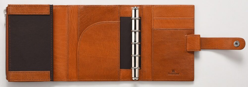 システム手帳の王道とも言えるスタンダードなサイズ。バインダーもリフィルの種類も豊富なのでカスタマイズしやすい。リング径も多く揃う。軽快に持ち歩くならリング径11〜15mm、情報をたっぷり収納するなら19〜25mmが目安。