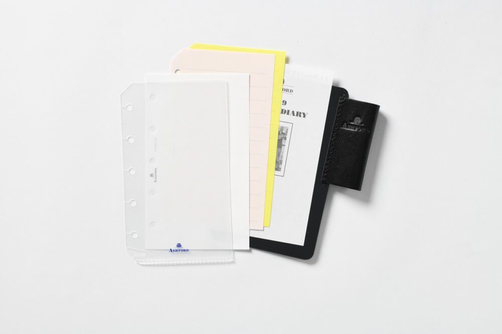 リフィルは約62W×105Hmmで主要6サイズの中では最小サイズ。バインダーやリフィルは、アシュフォードが意欲的に作っている。近年では他メーカーからもM5サイズのバインダーやリフィルが続々登場。機能的でかわいいデザインや、素材にこだわったクラシカルなデザインなど、種類も増え続け、システム手帳ユーザーの心を鷲掴みにしている。