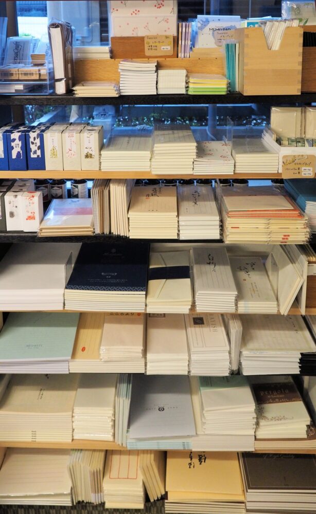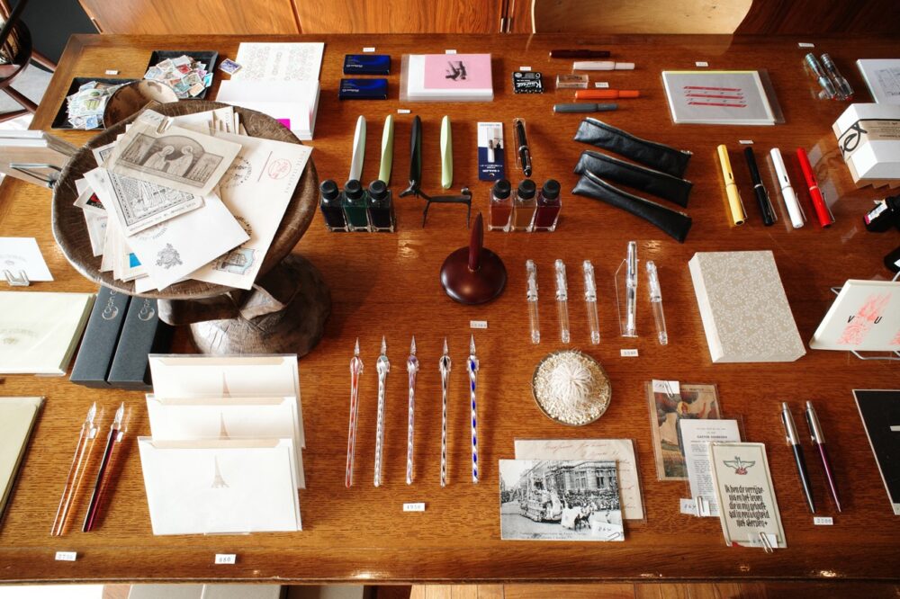 天神から所要約10分、アクセス抜群の大濠公園至近にあるリンデカルトナージュには「手紙」をテーマに厳選したアイテムが丁寧に置かれている。店主の瀬口賢一さんが、離れて暮らす母親との手紙のやりとりや、20 代の頃にパイロット カスタム742 を購入して万年筆の魅力にハマったことをきっかけに、2014 年にオープンした。書くことにまつわるワークショップや活版印刷も人気。ガラスペンもおしゃれに展示されており、試し書きして検討することができる。