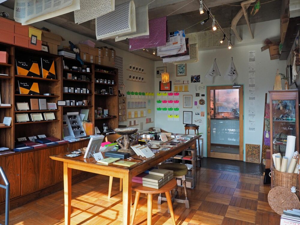 センスと愛嬌あふれる文具と雑貨のメーカー、ハイタイドの本社1階にあるフラッグシップショップがここ。「NO MORE OF BORING DAYS(たいくつな日々にユーモアを)」のコンセプトの下、ハイタイド製品約2500種の中から厳選したアイテムや、九州在住の作家もの、海外で買い付けた文具も扱う。コーヒーを楽しみながらゆっくり滞在したい良店だ。