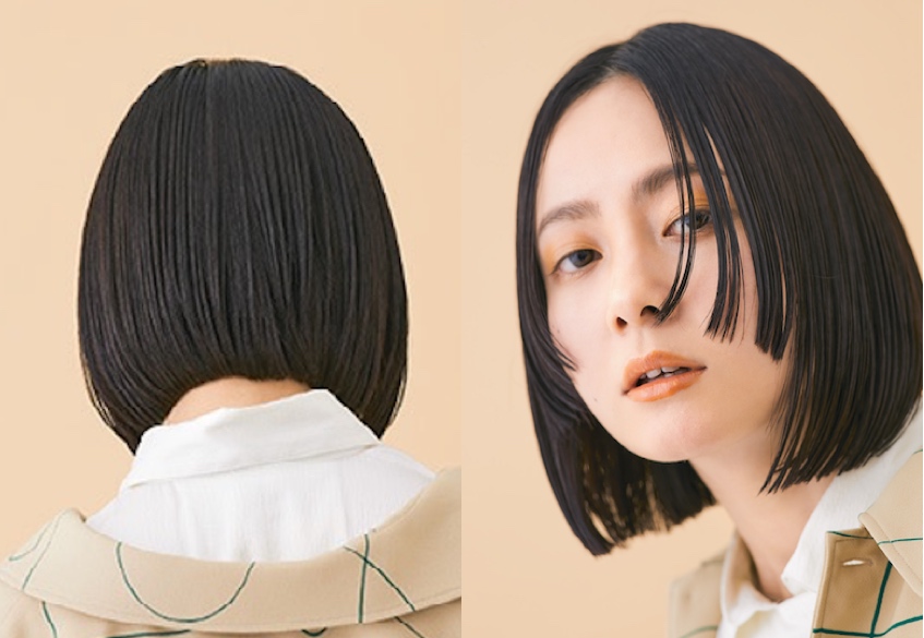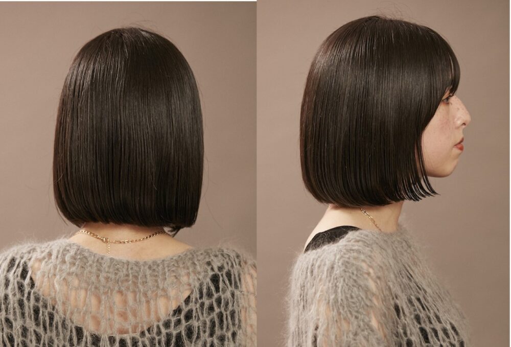 人気の切りっぱなしボブにもちのよさ、手入れのしやすさなどの視点を落とし込んだサイスティナブルボブ。フラットな丸みをつけることでよりクリーンな印象に。