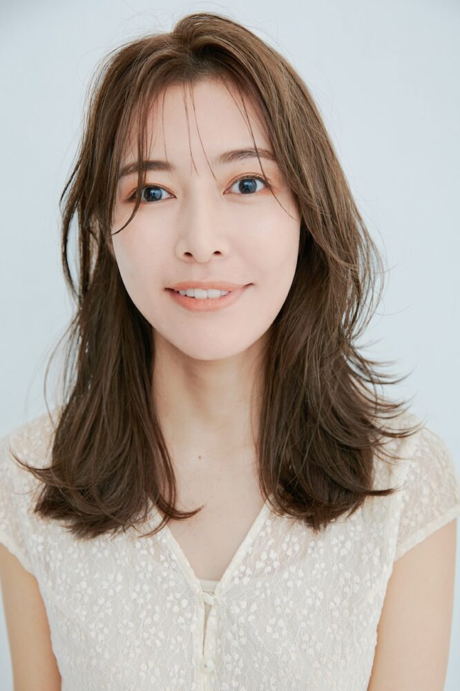 柔らかさを前面に押し出したミディアムレイヤースタイル。明るめのスモーキーブラウンのカラーが透明感をもたらし、軽やかな印象へ導く。シアーぎみのバングも洗練された雰囲気を好サポート。