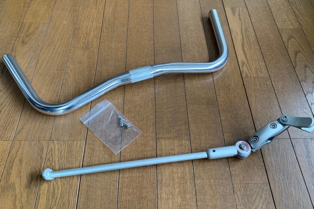 次はハンドルの換装。元々ついていたのはドロップハンドルなのだが、前傾姿勢は中年男性には少々辛い。もちろん上り坂などは力も入れやすく、早く走るのには良いのだが、街乗りや通勤時、子どもと連れ立ってサイクリングといった使用がメインの私に最適なハンドルとはいえない。