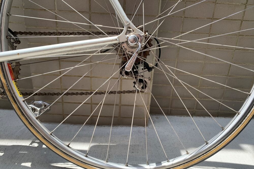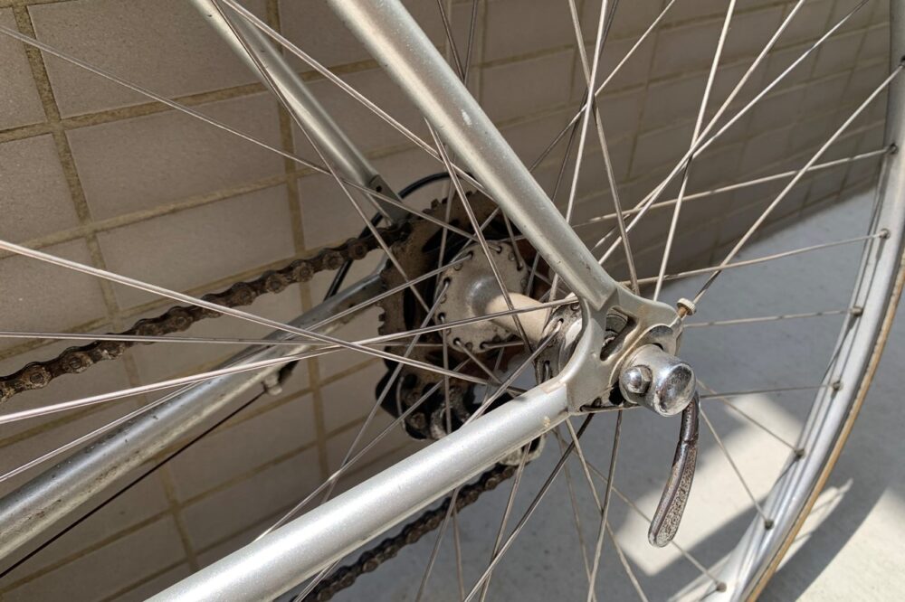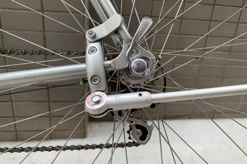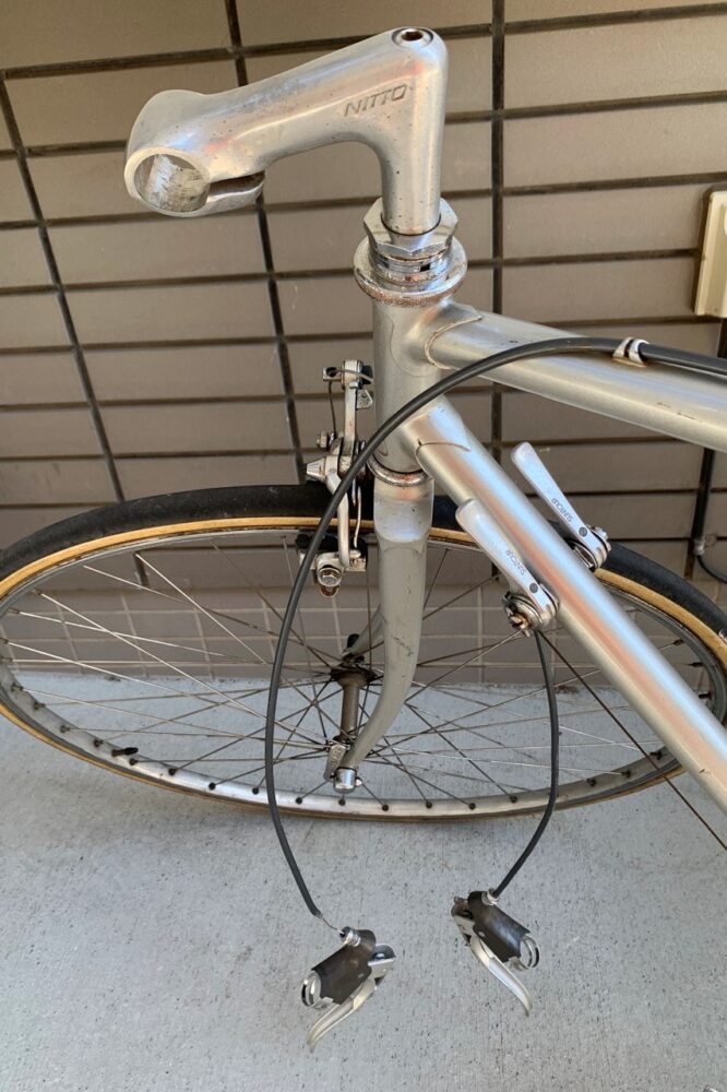 カスタム対象は、10年近く所有してきたクロモリのロードバイク。高価なビンテージではないけれど、近所の散策などで愛用してきたもので、シンプルでスリムなフォルムが気に入っている。ブランド名などは表記されておらず、「ISHIWATA EXO」というチューブセットのみが表記されている。ISHIWATAとはTANGE(タンゲ)と双璧をなす国内フレームメーカー、Kaisei(カイセイ)の元となったフレームメーカーで、今はなき石渡製作所のものらしい。詳しい年代は不明だが、石渡製作所は90年代には倒産しているので、それ以前のフレームではあるようだ。その他、Campagnolo(カンパニョーロ)のディレーラーやNITTO(ニットー)のステム、UNIVERSAL(ユニバーサル)のブレーキなど、いくつかビンテージらしいパーツがついている。