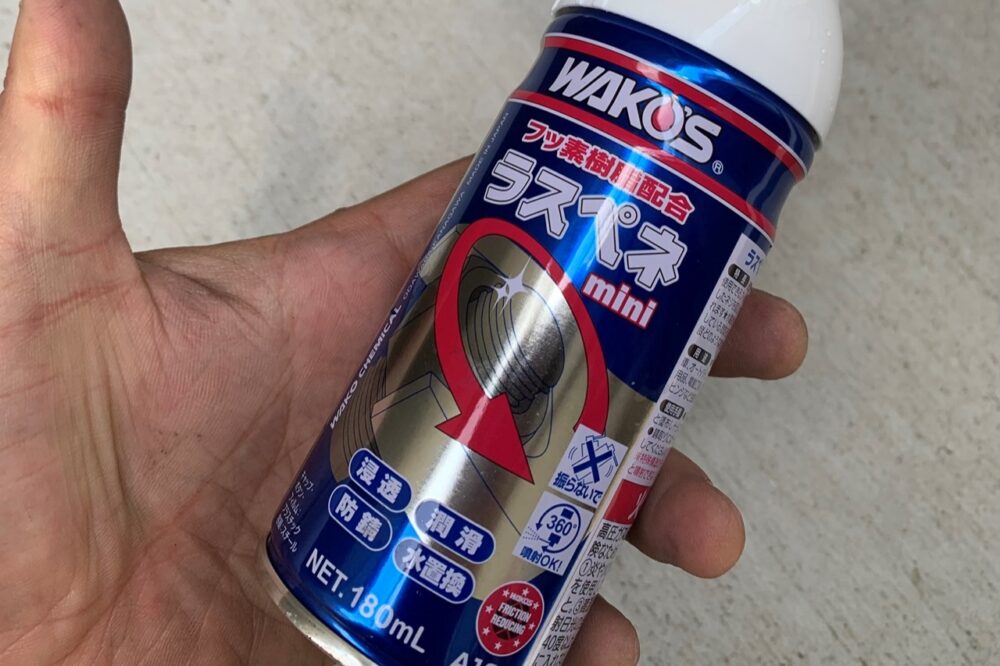 また「FUNNY’S B.C.S.」からは「少しくらい洗車した方が……」というご指摘も受けたため、水洗いとラスペネ(浸透、潤滑、防錆、水置換の万能スプレー)の塗布を随所に。丹念に行ったというほどではないけれど、いくらかの洗車、カサカサだった可動部分へのケアも行った。