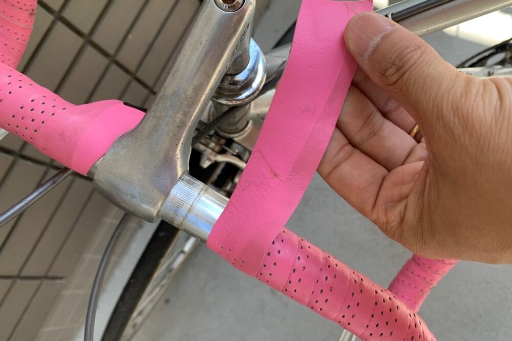 エンド側からクルクルと巻き、元々ついていたビニールテープをつけて完成!「わずか30分!」とか言いたいところだが、不慣れな私は全工程を行うのに2時間以上かかってしまた。でもこの2時間余りで一気に私好みの外観と乗り心地、そして何よりも通勤に使いやすい仕様となった。