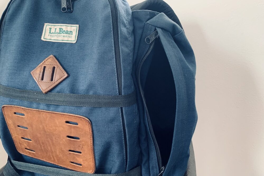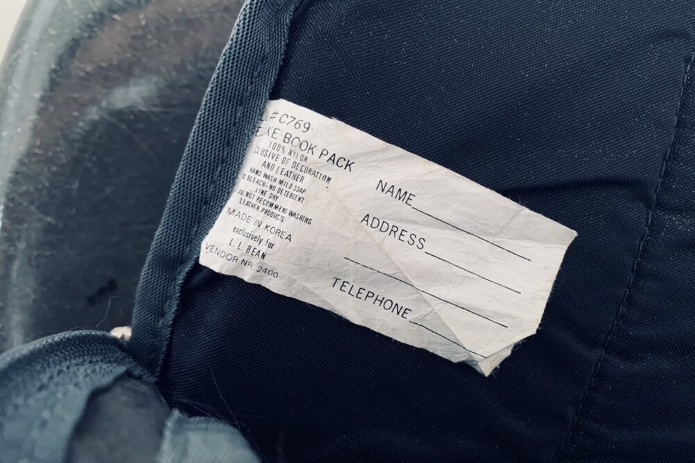 中学生の頃に買ってもらった当時は私には少し大きかったL.L.Beanのナイロン製バックパック。高校生になってからは部活や修学旅行、大学生になってからもちょっとした旅行などで使っていた気がする。中に隠れたタグには、残念ながら「Made in U.S.A.」の表記ではなく、「Made in Korea」とある。