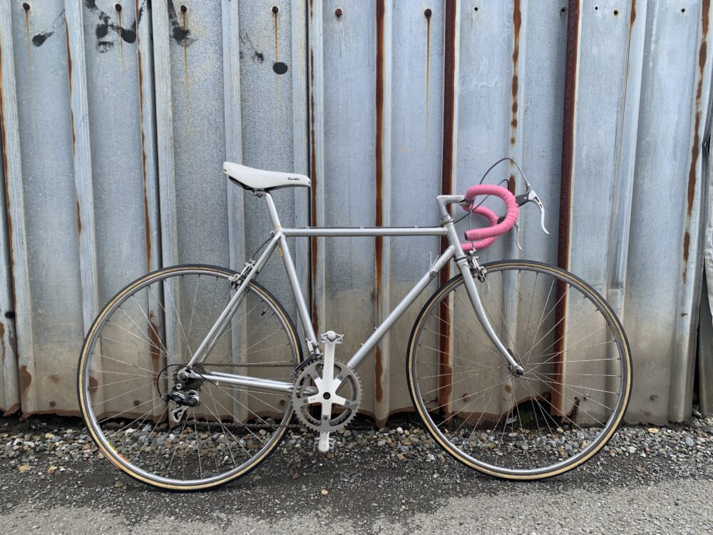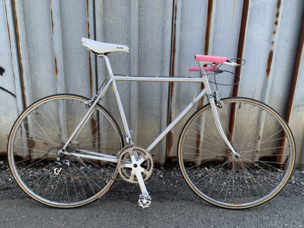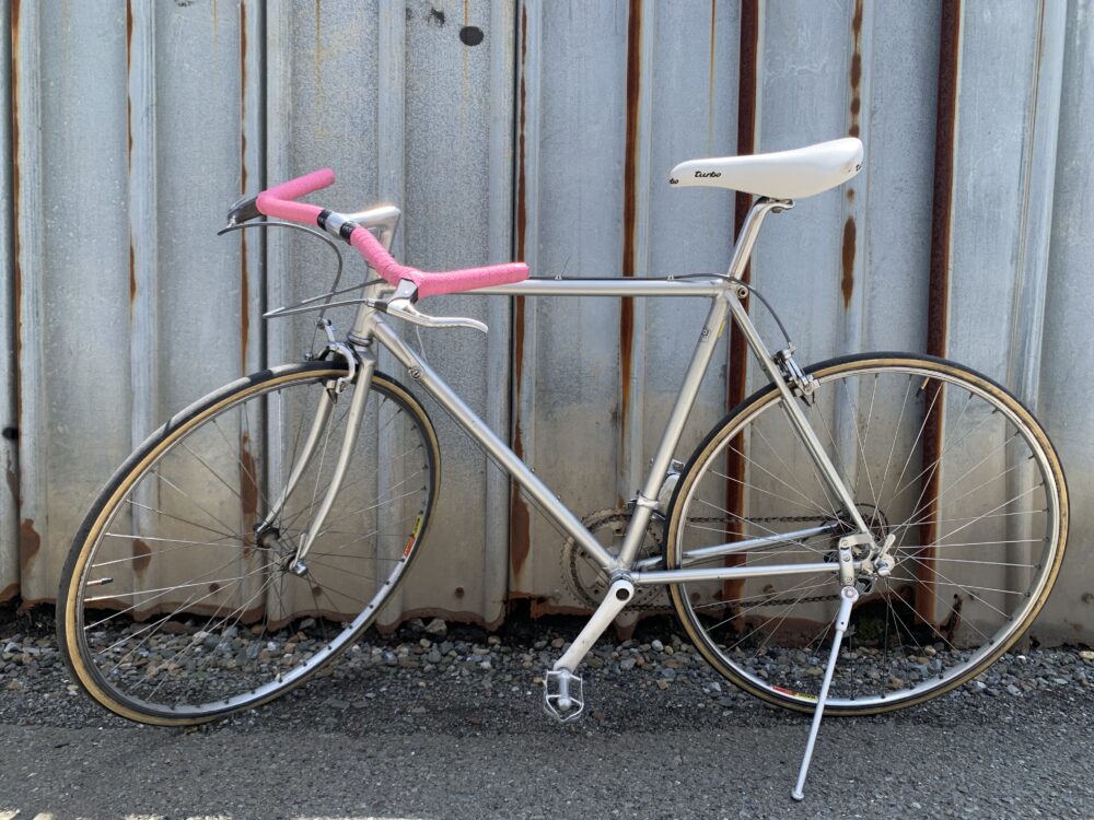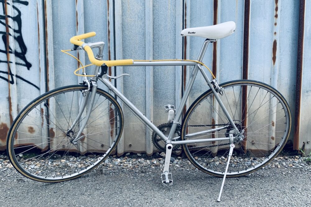 2. ハンドルをプロムナードに換装し、サイドスタンドを後付けしたクロモリバイク