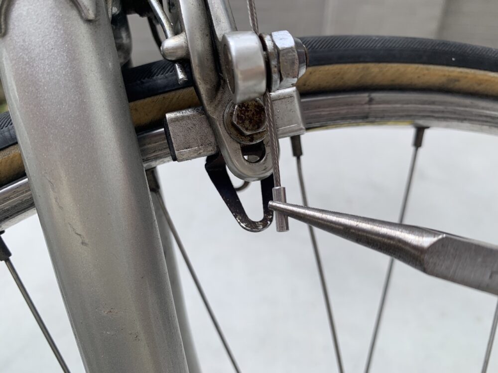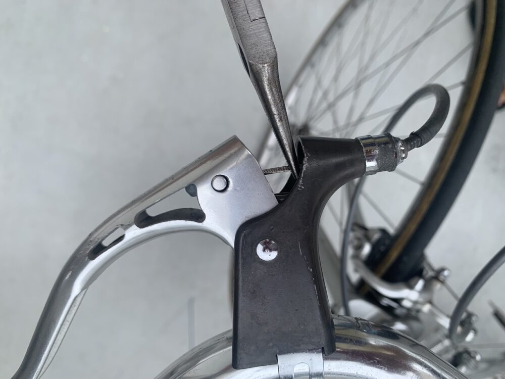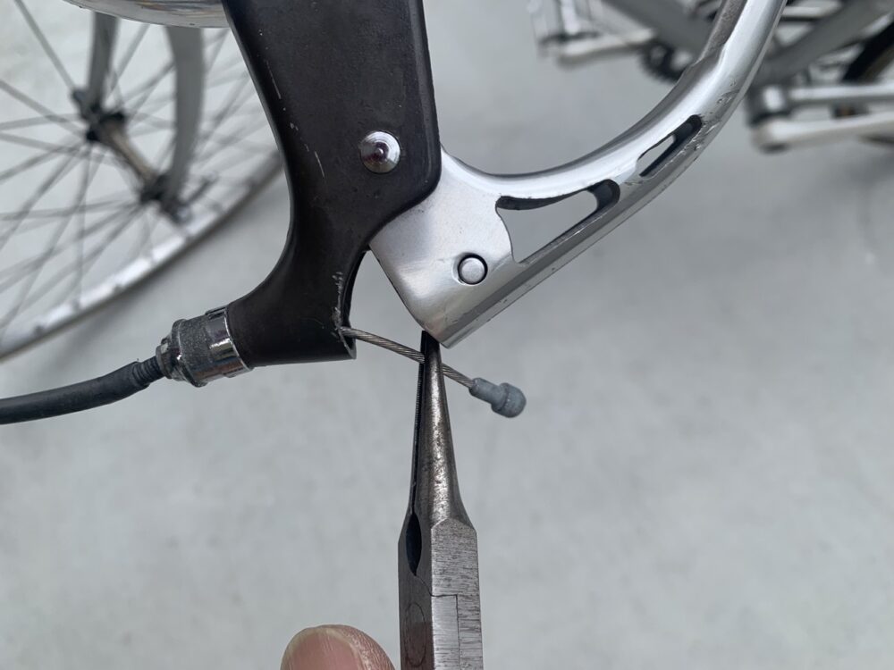 まずはすでに付いているインナーワイヤーのエンドキャップを切断し、ブレーキレバーからラジオペンチなどで引っ張り出しアウターチューブから引き抜く。もちろんアウターチューブも外しておく。交換するワイヤーはリア用とフロント用を用意。チューブはフロント&リアともにまかなえそうな長さだったので1本のみ購入しておいた。