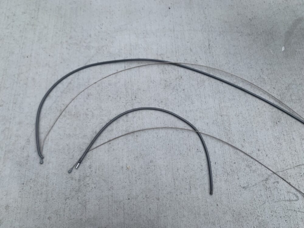 そして、新旧のワイヤーを引き揃え、元々付いていた古いほうのワイヤーの長さを参考にしつつ、新しいワイヤーは少々のマージンを残して切断。テストがてらにインナーワイヤーを装着し、インナーに通す形でアウターチューブの長さを確認。確認後は切断(本来はワイヤーペンチが望ましいです)する。一気に短くすると失敗した時に取り返しがつかないので、初心者は長めに切って、後から調整がベターのようです。