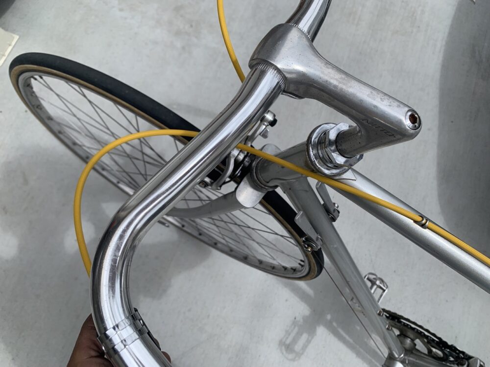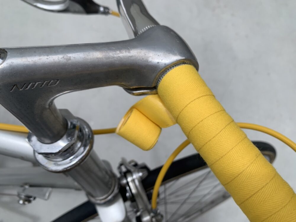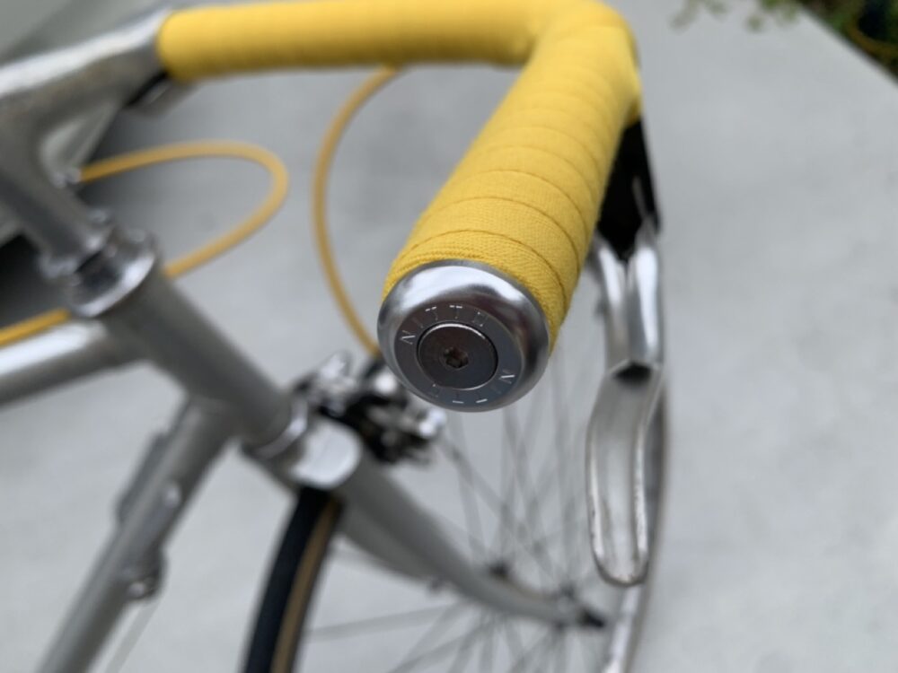 そして最後にステムがNITTOだったこともあり、バーエンドもNITTOを選んだ。黒とシルバーの2色があったが、フレームカラーと合わせたシルバーを選び、装着! ついにシルバーベースの控えめなクロモリロードから、ビビッドイエローと白を差し色とした自分好みのクロモリバイクが完成した。