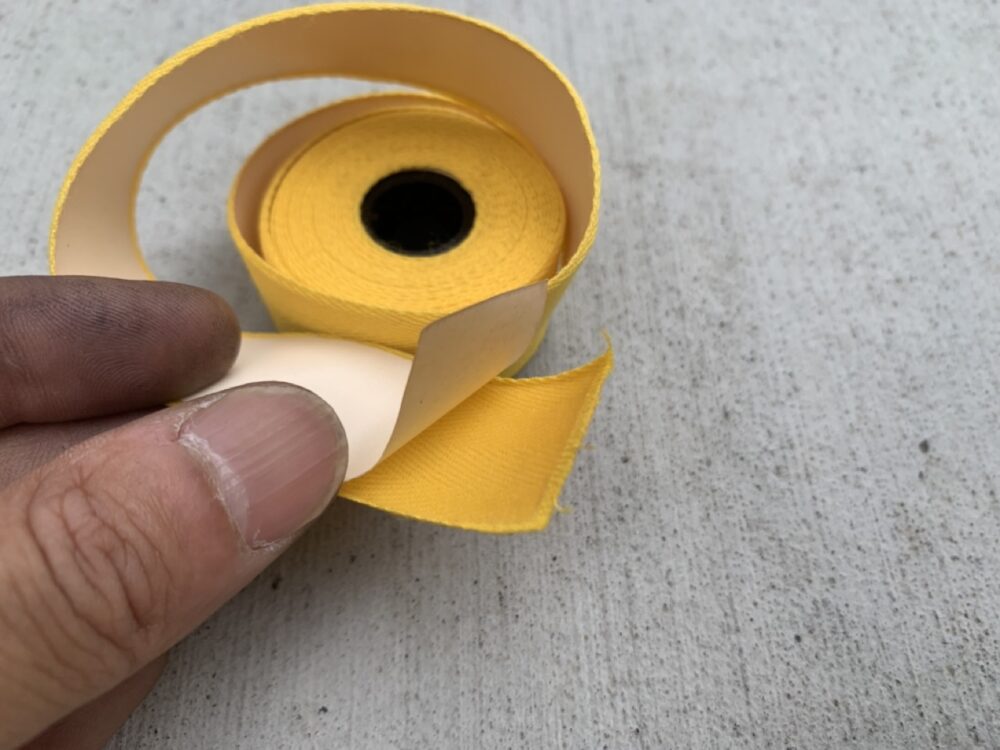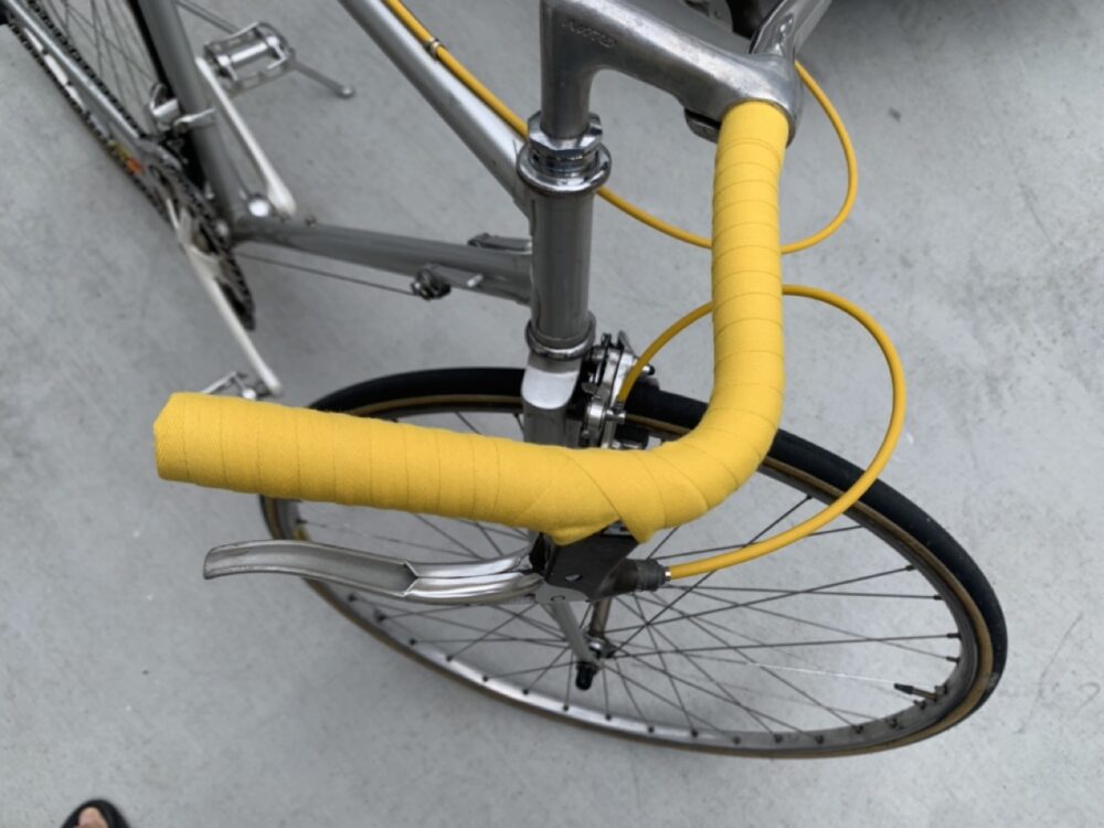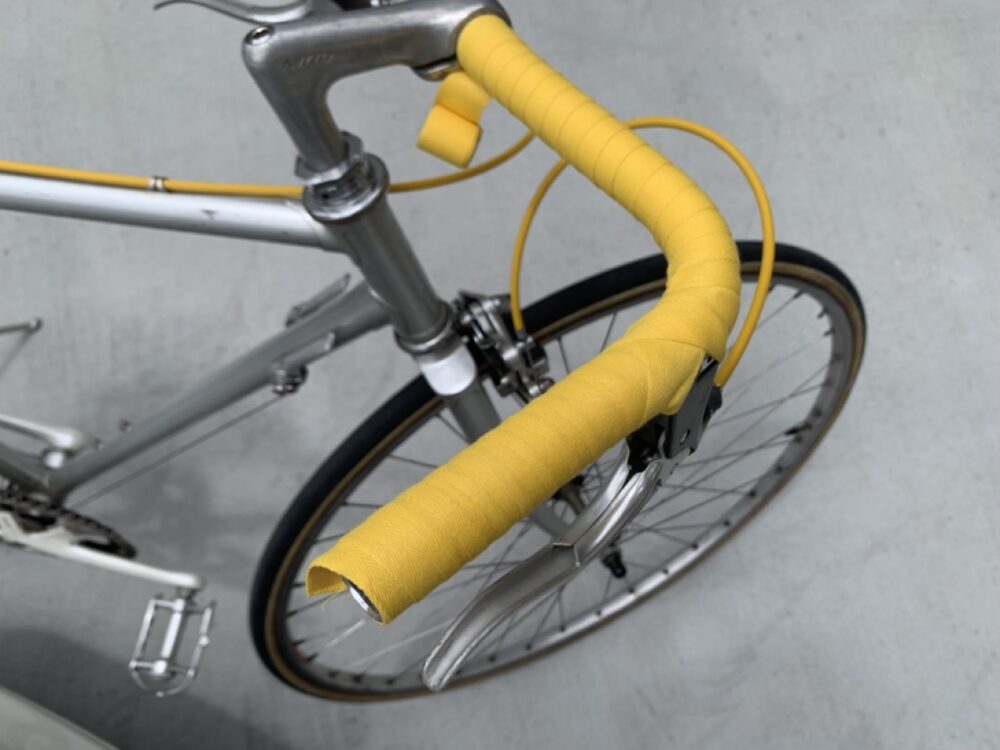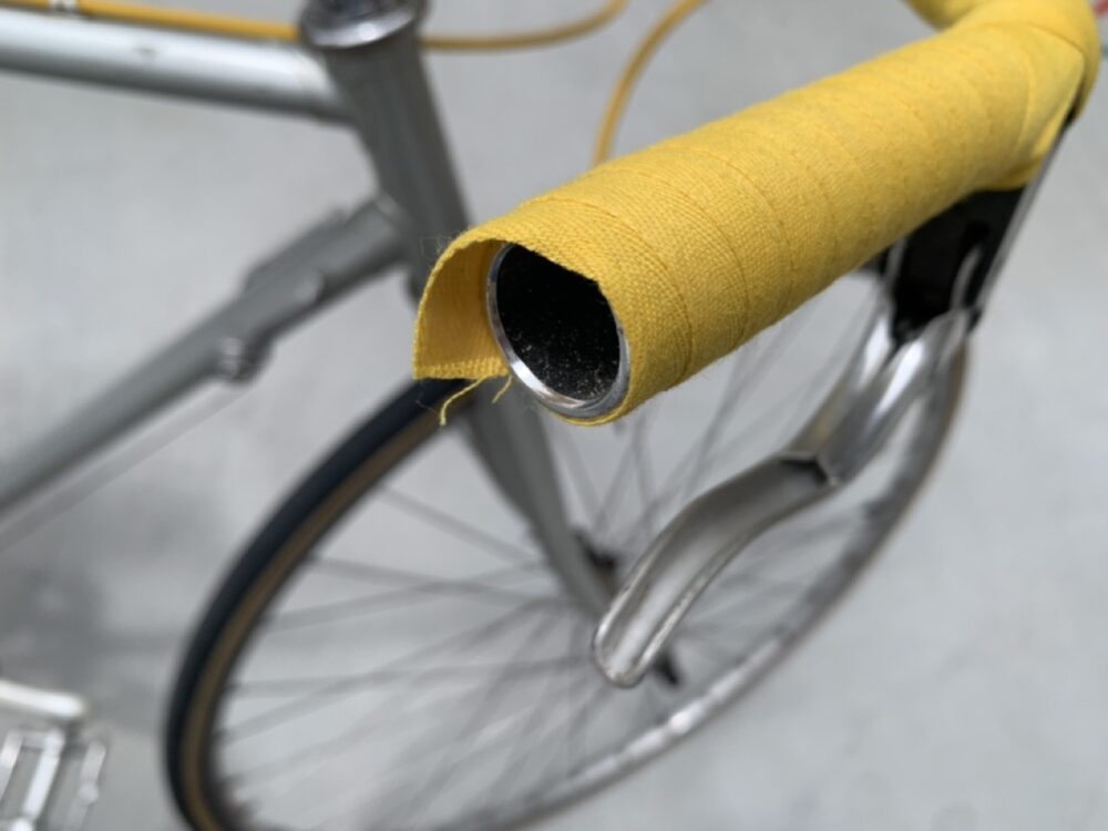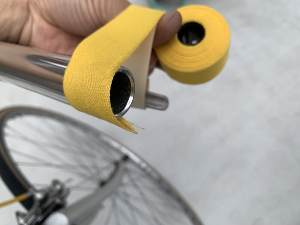 バーエンド側から少しだけ余分にはみ出しながら巻き始めていくのだが、ブレーキレバー近くになってからレバー部に巻き残しが出てしまうことに気づく。最初からそうなることを見越して綿テープを切り貼りしておくんだった……。初心者らしいミスに後戻りを考えるが、先に交換したチューブに合わせた黄色のハンドルを見たい一心で一気に巻き切る。