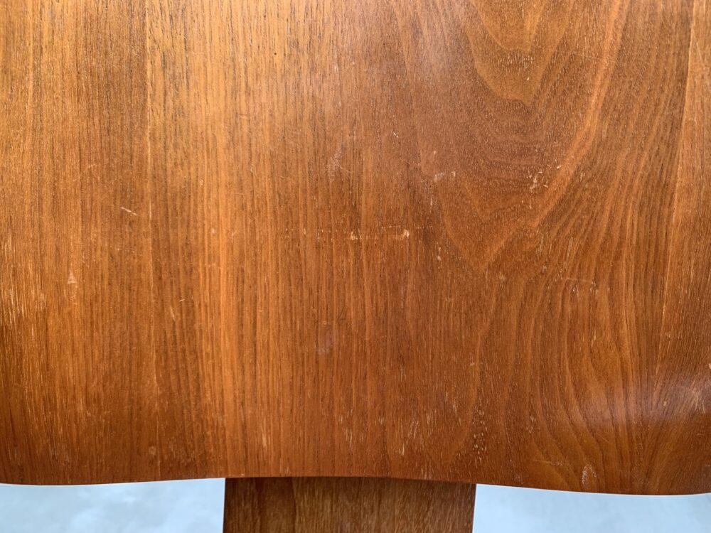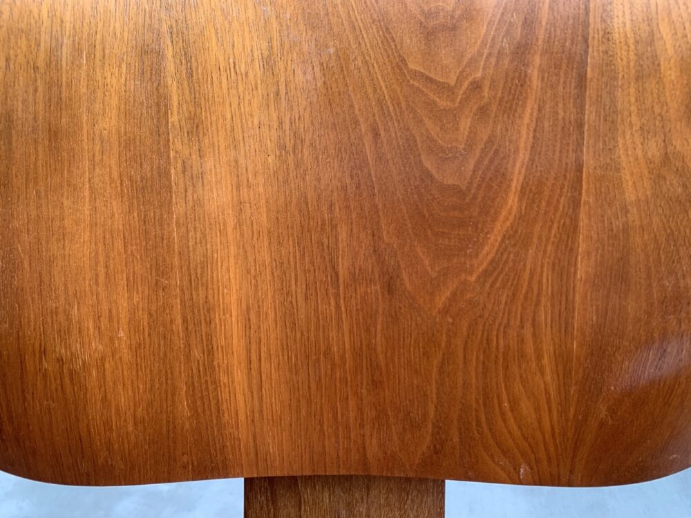計10回程度、オイル塗布を繰り返した結果が上の写真。乾燥した状態でもしっかりと自然な光沢を放っているのがお分かりだろうか? 背もたれや脚などは、あらかじめニスなどの塗装が残っている上に、さらにレモンオイルで磨き込んでいるため、塗装を剥がしてからオイルを塗り重ねた座面とでは光沢感に少々の差があるが、かなり自然で美しい光沢を放つビンテージチェアに復活した。