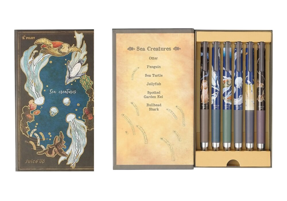 パイロットコーポレーションは、昨年12月に発売した光沢感のあるダークカラーのインキ色が特長の「ジュースアップ クラシックグロッシーカラー」の限定デザインとして、海の生き物をモチーフにしたゲルインキボールペン「ジュースアップ クラシックグロッシーカラー うみのいきもの」を7月26日(火)より数量限定で発売。