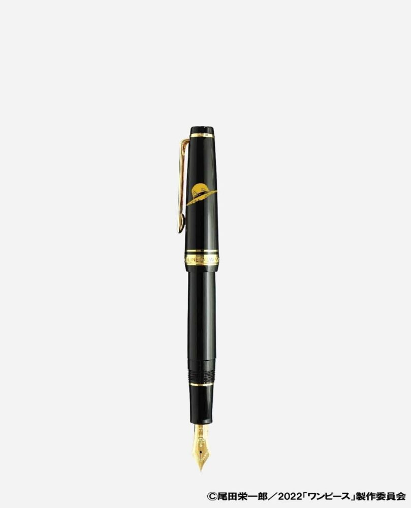 万年筆のベースモデルは、セーラー万年筆のド定番モデル「プロフェッショナルギアスリム金万年筆」。ペン先は本格的な14金で、オリジナルのアンカー、縄のモチーフと、漫画の連載年の1997年を刻印している。