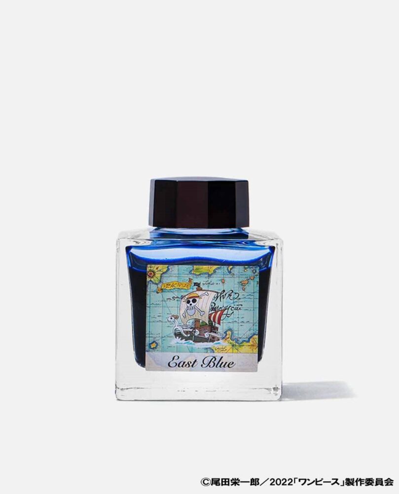インクはイーストブルーのイメージ(物語の始まりの海で平和の象徴)に合わせて、優しい青色のインクに調合。オリジナルな特徴が満載!
