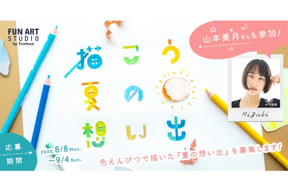 トンボ鉛筆はイラスト投稿キャンペーン「描こう、夏の想い出」(タイトル)を実施。「夏の想い出」をテーマに色えんぴつで描いた作品を指定のハッシュタグをつけてインスタグラムに投稿しよう。女優の山本美月さんもこのキャンペーンに参加。同時に審査員も務める。