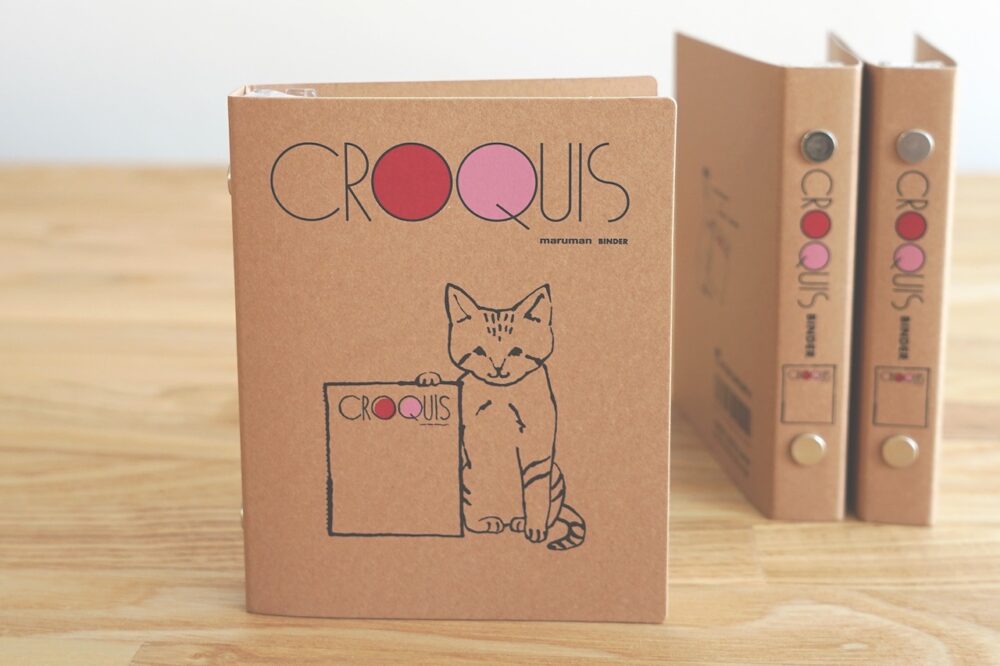 1970年に発売された人気ロングセラー「クロッキーブック」柄の手のひらサイズの小さなバインダー。『ミニミニルーズリーフ』(別売) の専用バインダーで、入替えできるメモ帳としても使うことができる。人気イラストレーター「浅野みどり」さんが描く猫の表情とクラフト素材が優しい雰囲気に。