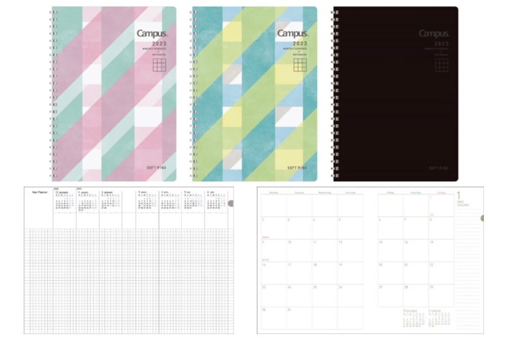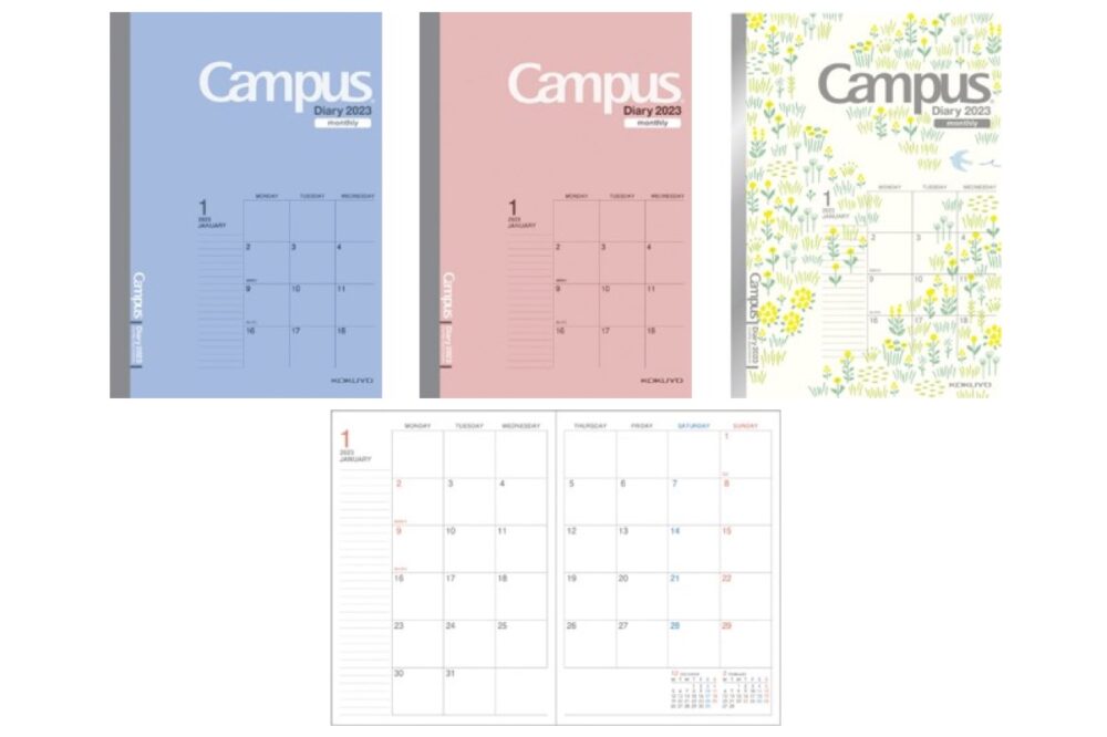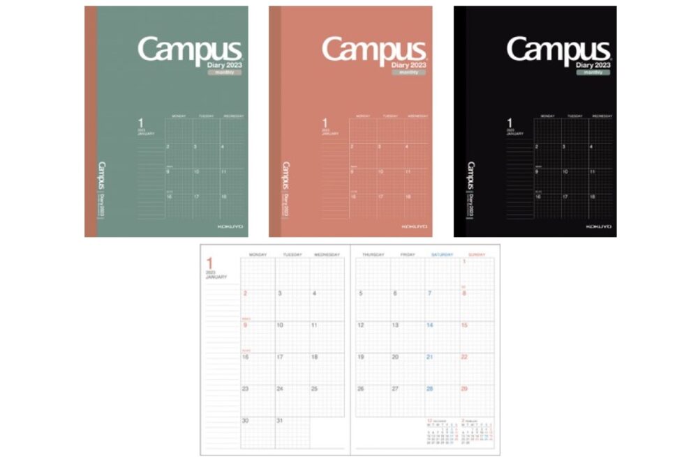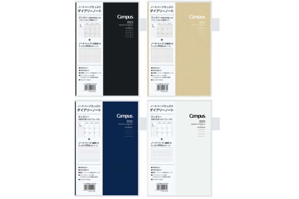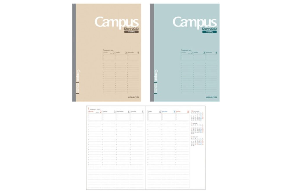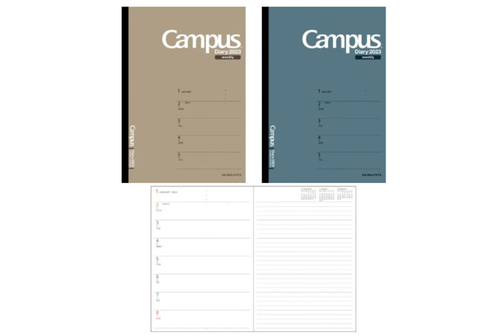 コクヨは、 シンプルな罫内容とキャンパスノートと同じ紙を使用した安心の書き心地が人気の「キャンパスダイアリー」シリーズの表紙カラーを一新した2023年版を、8月中旬より順次発売。